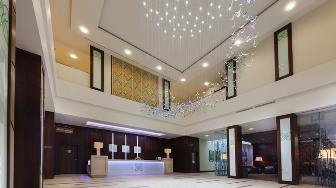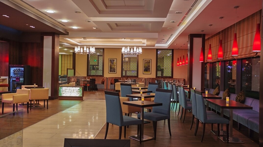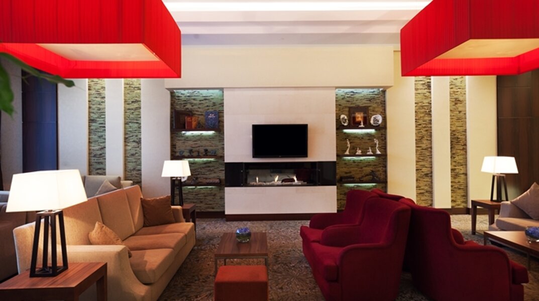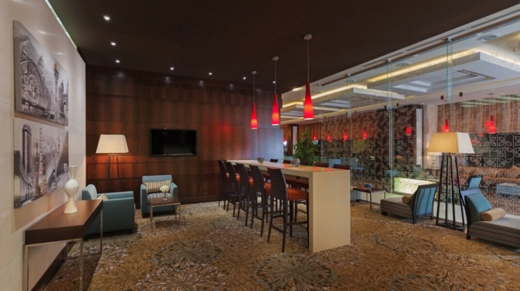 Public spaces at the Hilton Garden Inn Astana are outfitted with stylish, functional furnishings. The design enhances the communal areas with modern aesthetics and practical elements, providing a comfortable and inviting environment for guests.