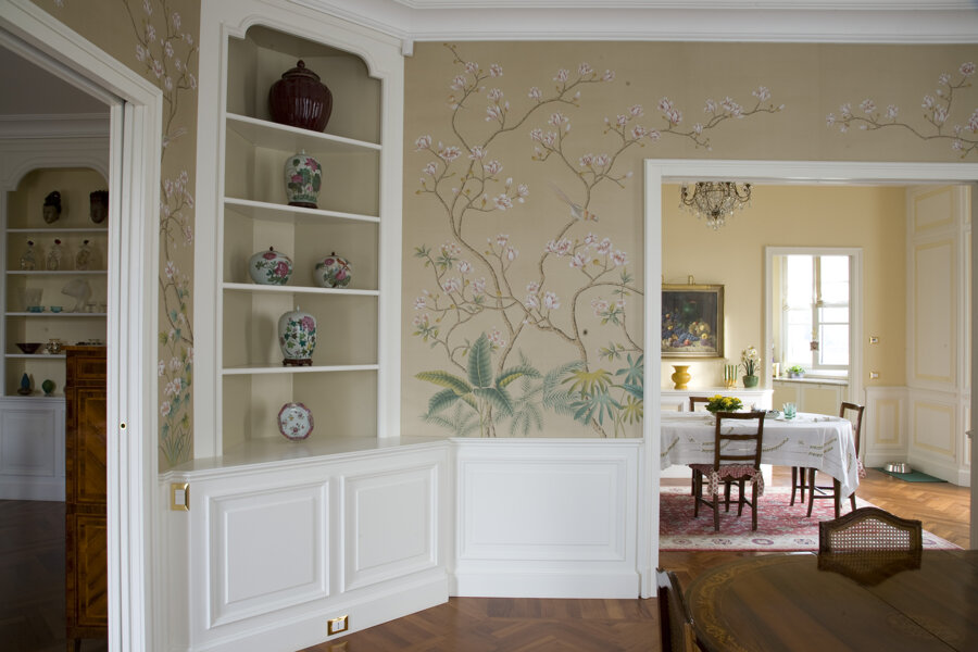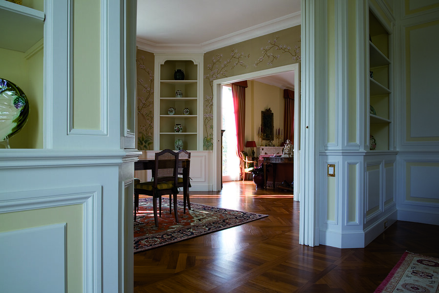 Brianza Villa is a perfect blend of tradition and modernity. Attention to artisanal details, the use of high-quality materials, and a sober yet elegant design create spaces that not only reflect refined taste but also a profound care for craftsmanship and comfort. Every interior element is designed to offer a unique and luxurious living experience while maintaining a connection with Italian artisanal tradition. The boiserie crafted with extreme artisanal care, bespoke furniture, and refined decorative details, such as hand-crafted bronze handles, contribute to an atmosphere of understated luxury. The large windows allow natural light to illuminate the spaces, highlighting the beauty of the materials used and creating a warm and welcoming environment. The villa is equipped with the latest technologies for comfort and security, integrating these solutions discreetly to maintain the classic aesthetics of the interiors.