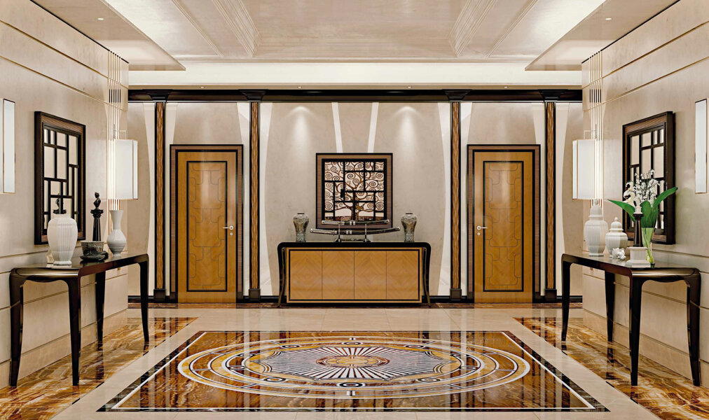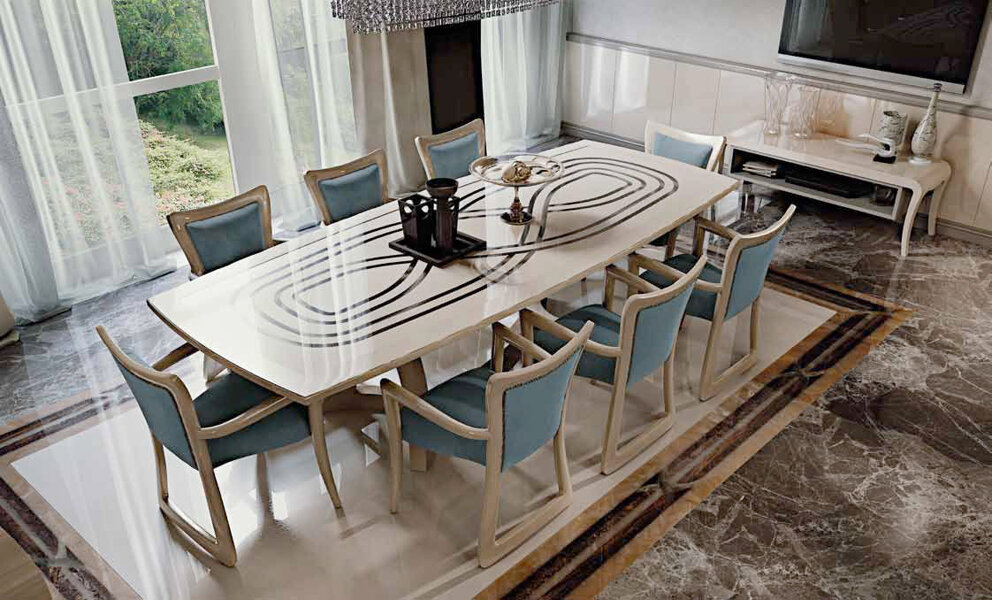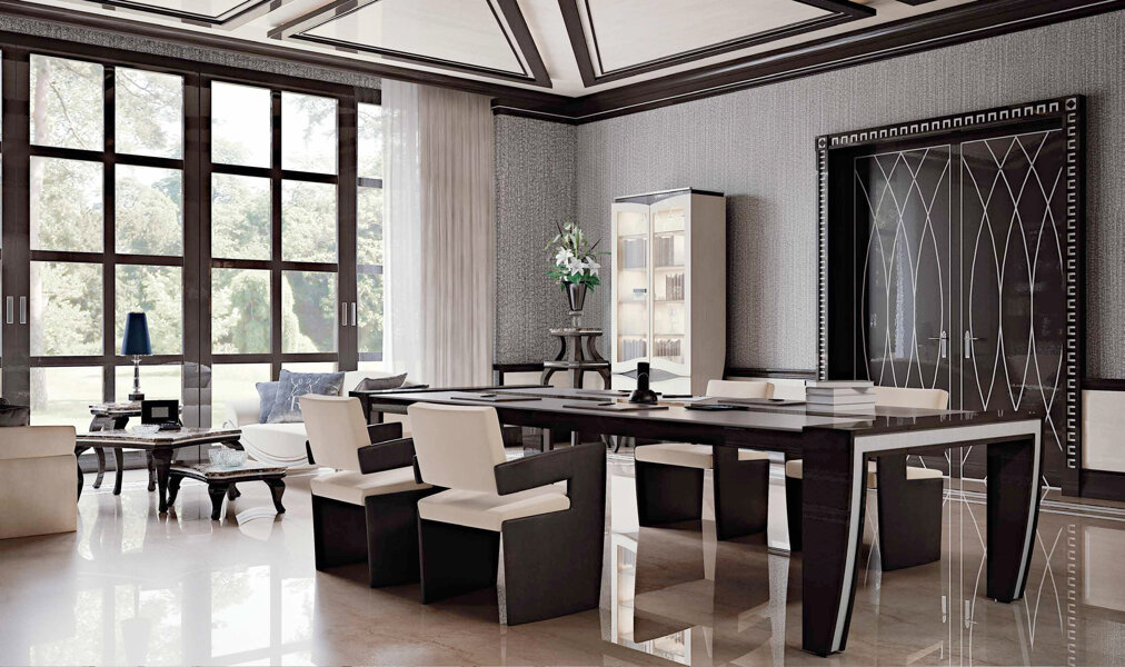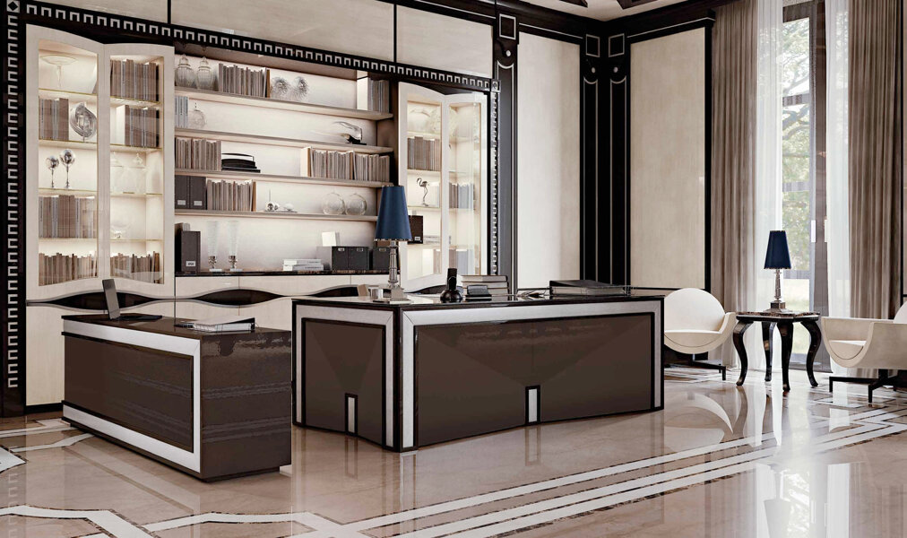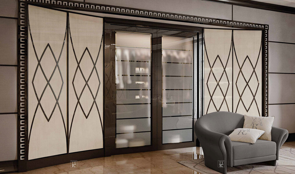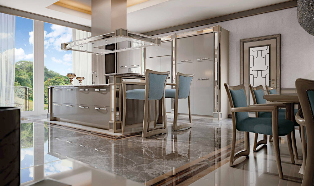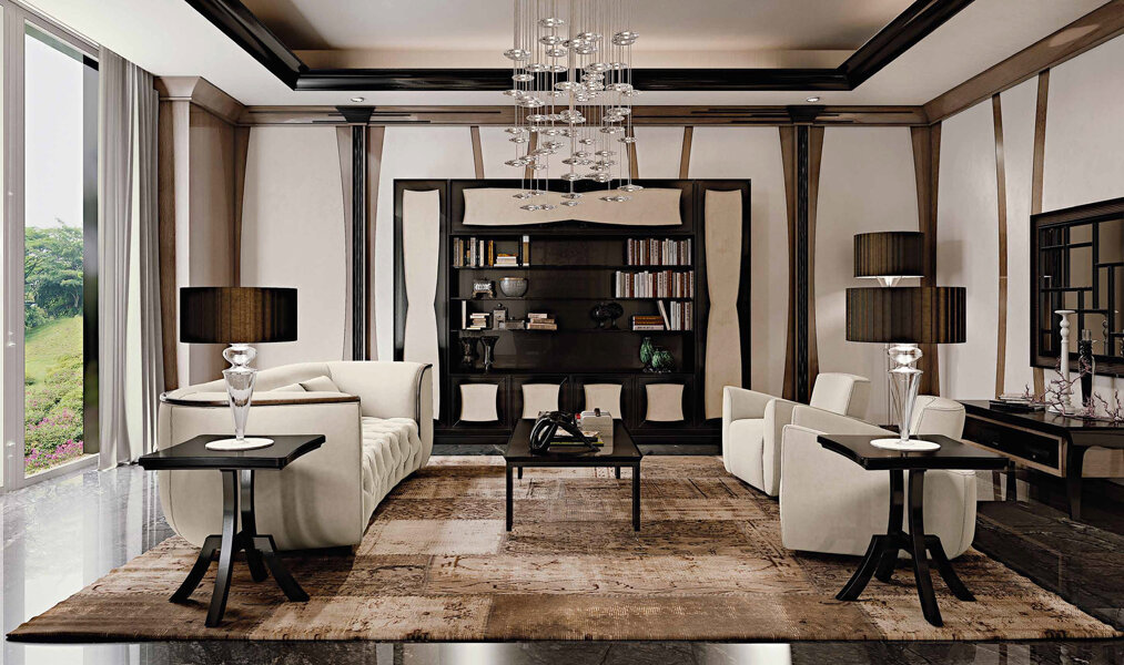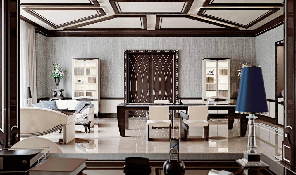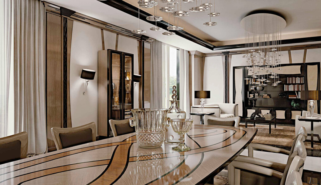 A Doha villa adorned with Art Deco furnishings and luxurious materials. The design blends vintage elegance with contemporary luxury, featuring intricate details and high-end finishes that create a lavish and stylish environment.