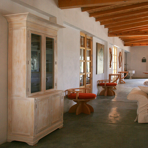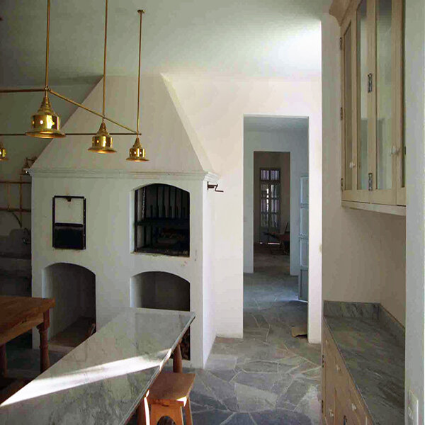 A villa in the Mexican greenery. The Space was conceived with the intent of respecting the unique identity of the place that hosts it, which stands out for its refined formal and material solutions, such as the walled fireplace and the uncertain laying of the stones of the floors, the solid woods worked with mastery with a solid wood table resting on steel springs, and the suggestive vibrations of light.
